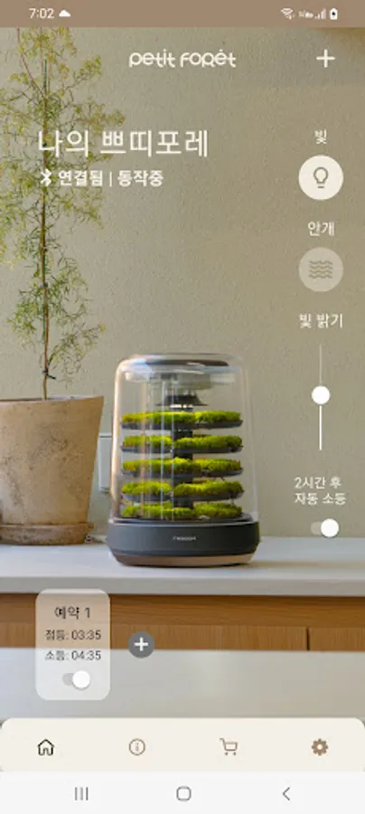 - Linked with Petit Foret natural moss air purifier via Bluetooth (BLE)