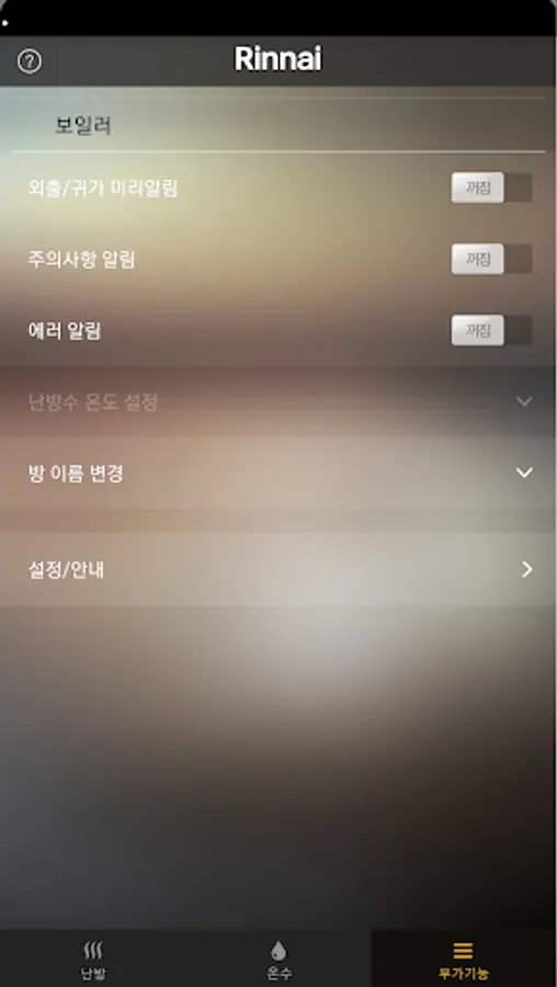 - By providing differentiated functions and app-specific notification services as well as basic functionality allows users to use a more easy and convenient temperature control system Rinnai each room.