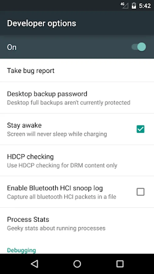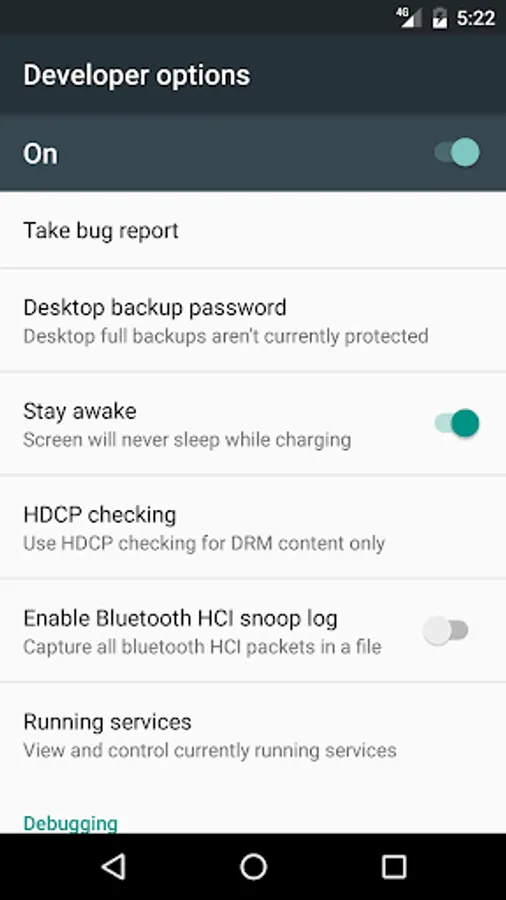 Developer options Screenshots
