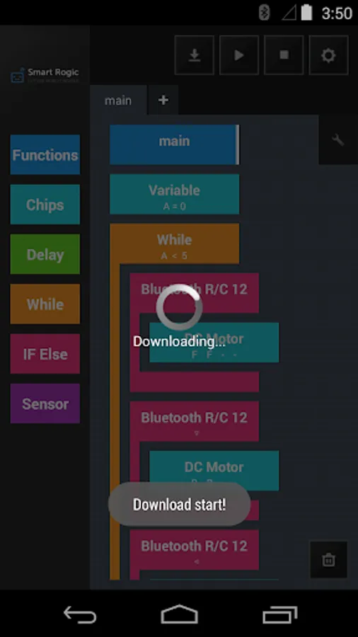The program can be downloaded from smart device that has a built-in Bluetooth to the robot