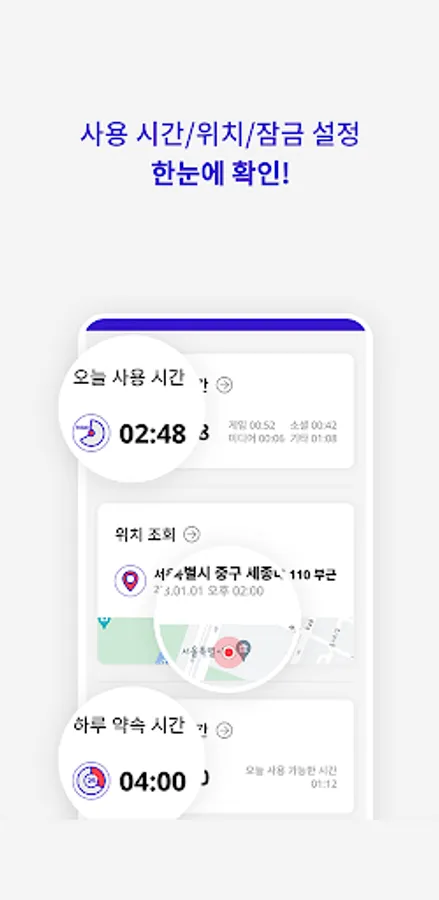You can check the current location to check the location of your child at any time, set school arrival and departure notifications to automatically search the location at a specific time, and designate a safe zone on the map to see the status of your child entering or leaving the area in real time. Please note. If your child's smartphone is turned off or not found due to communication problems, you can also check the most recent location.