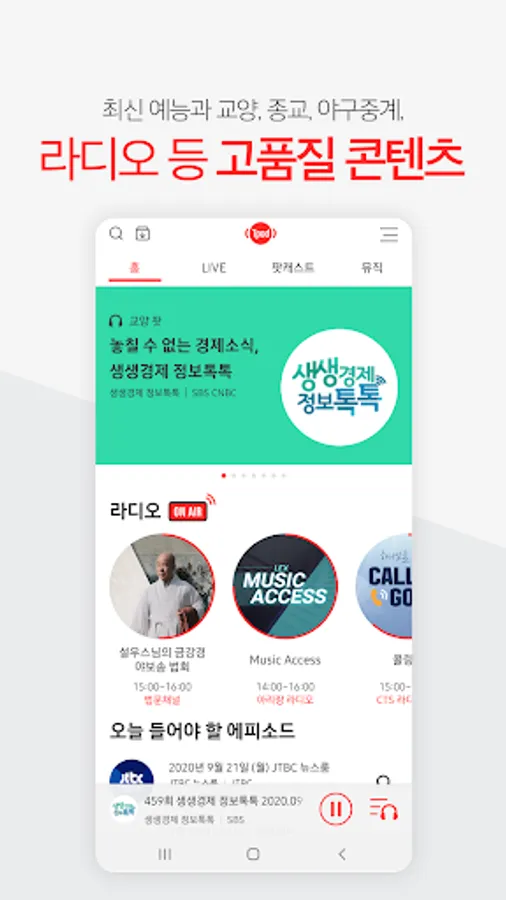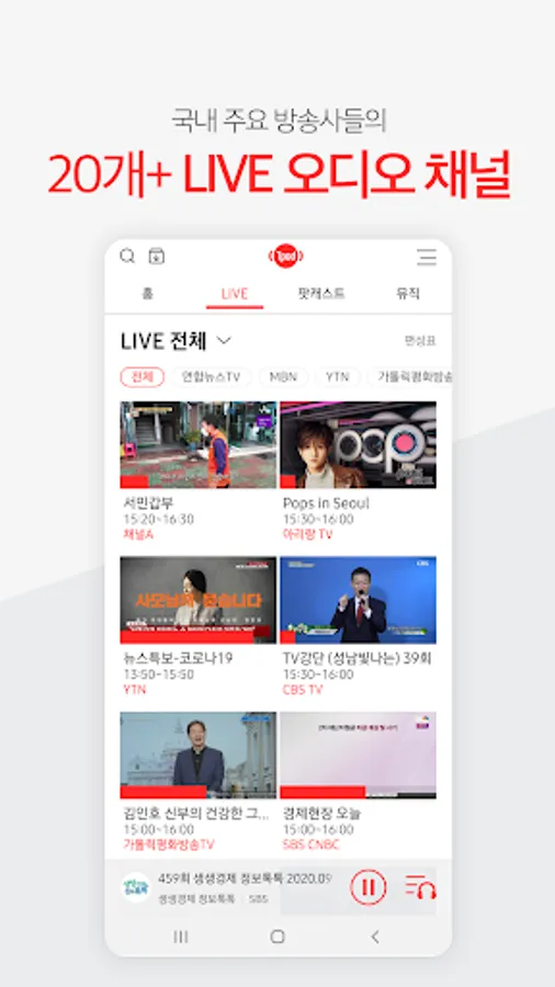 - You can watch live audio broadcasts of various genres such as the latest dramas, entertainment, news and culture, religion, and 24-hour music channels for free without logging in and paying.
