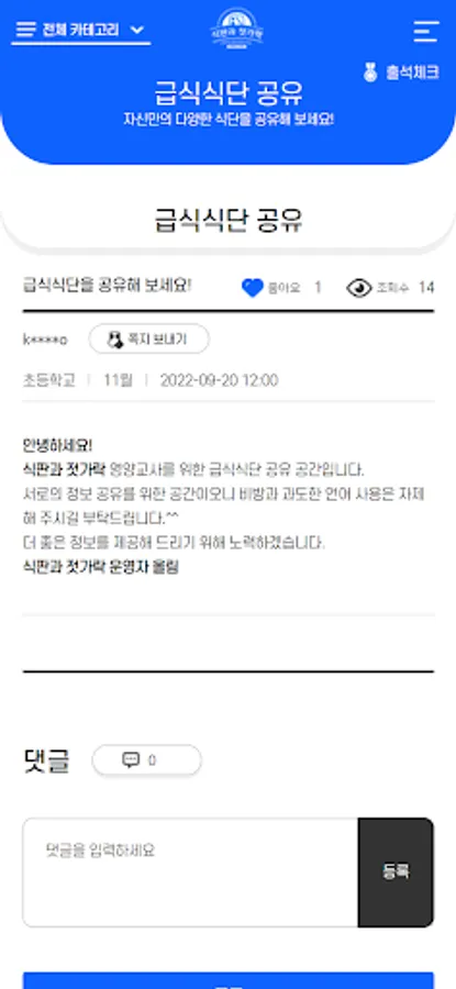 Food Plate and Chopsticks is an integrated nutritionist information community site that provides school lunches, recipe sharing, detailed information on food ingredients, connection for food ingredient distribution, and job search for nutritionists.