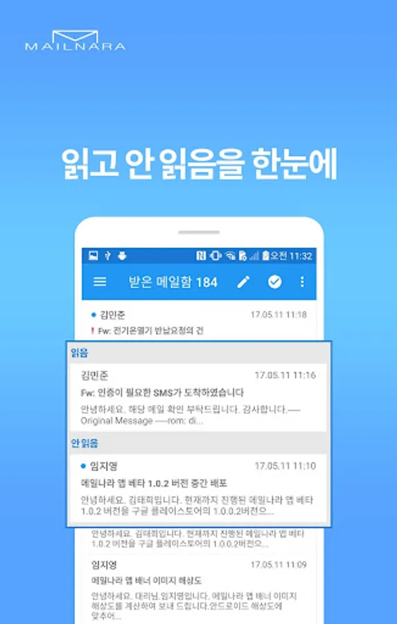 Mail Nation Lite version provides environment settings to manage apps except mail function and provides various settings such as mail setting, notification setting, spam setting, customer center, and so on.