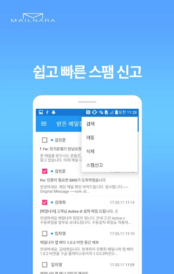 3. Quick spam reporting and management function Mail Lite version provides the function to check spam by selecting mail to report spam, spam immediately after selecting spam report, and checking and modifying spam settings in app environment setting .