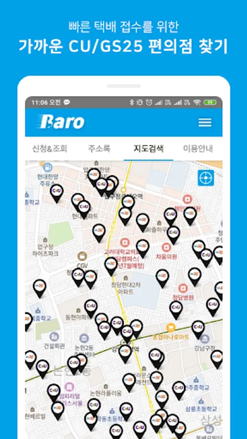 *Note: Currently, E-Mart 24 convenience store courier service is only available for some stores. Be sure to check the E-Mart 24 store that accepts convenience store courier service in the map search in the Baro Courier app before visiting!