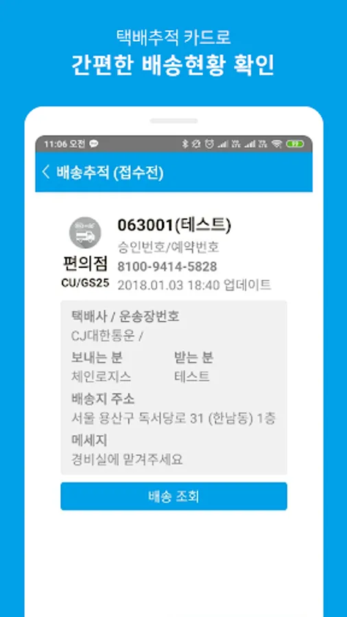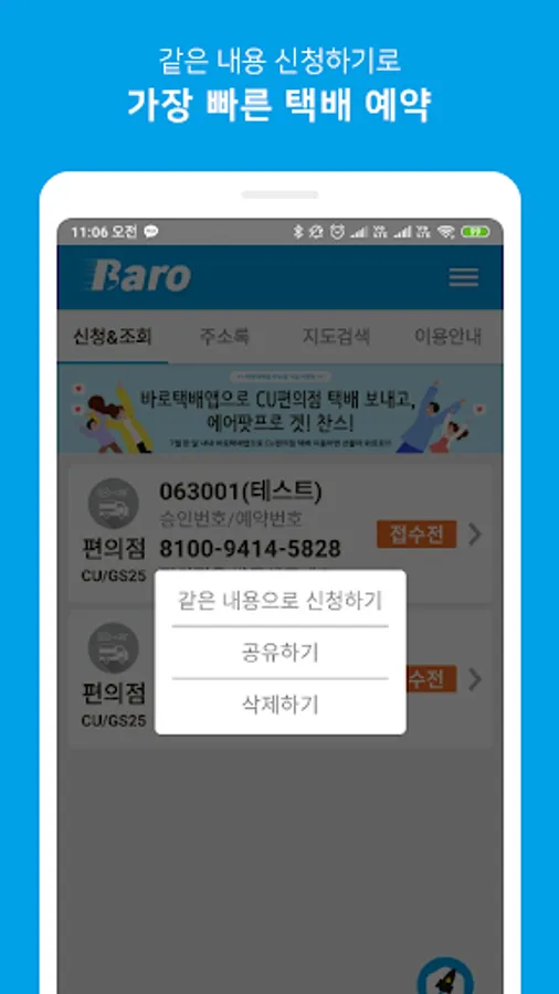 - Now, enter the courier information in the app and send it from the convenience store! Inconvenient convenience store courier and half-price courier reception information input can be quickly resolved in the right courier app.