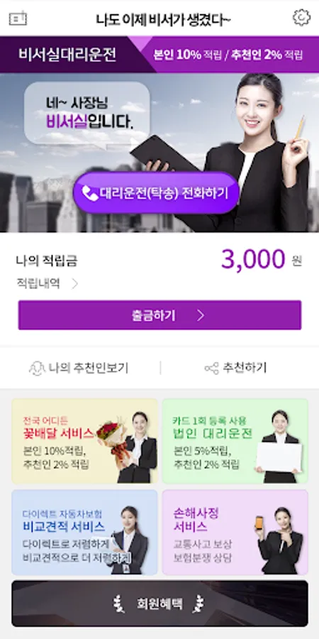 * When using surrogate driving, flower delivery, quick service, and vehicle consignment service, 5% of the amount used will be credited in cash.