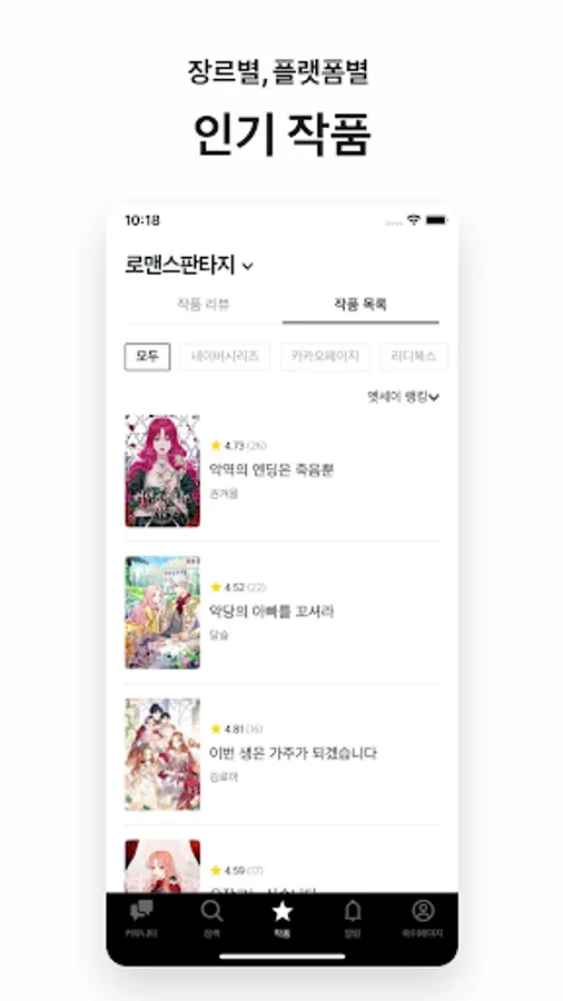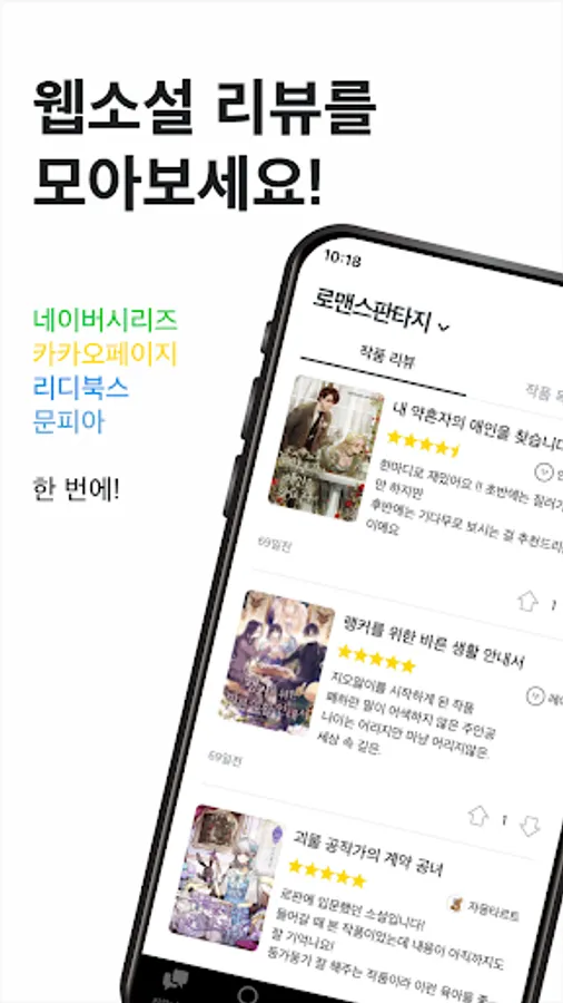 You can view the works of Navy Series, Kakao Page, Reddy Books, and Munpia at once. Find interesting works easily.
