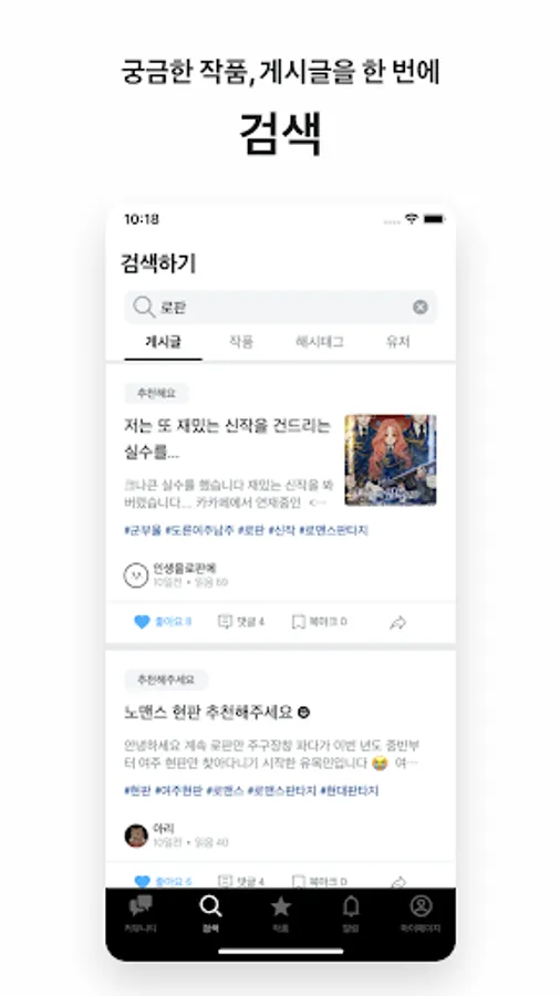 Find more details through posts, works, hashtags, and user searches. You can easily find various posts and web novel works.