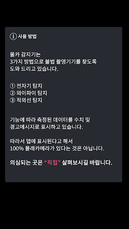 Hidden Camera Detector helps you find illegal recording devices in 3 ways.