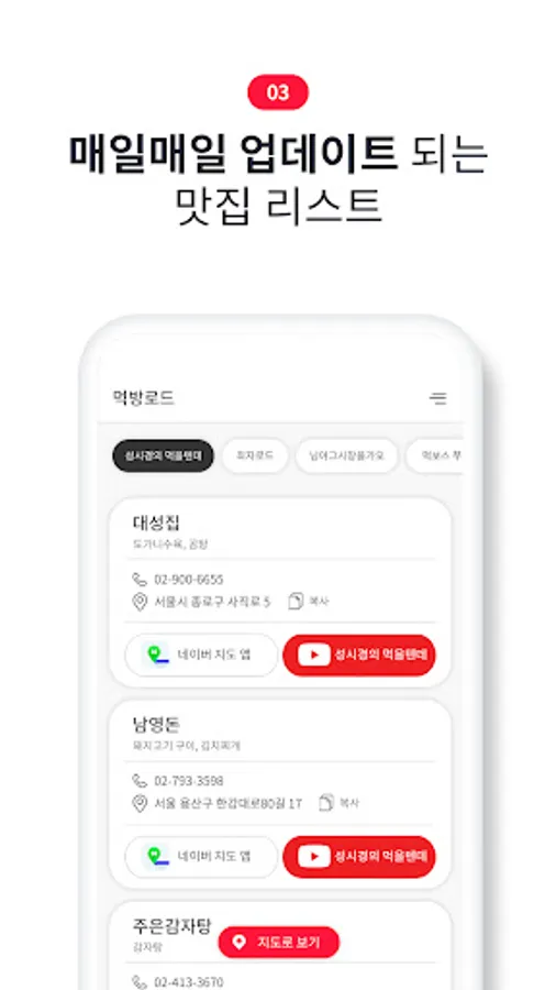 Recommended restaurants by YouTubers, such as I would eat, Mukboss, and Ttoganjip