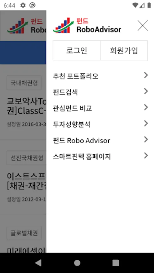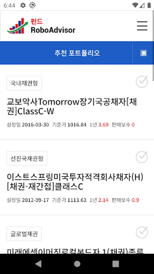 앱에 대한 자세한 설명펀드 로보어드바이저(앱)는 포트폴리오를 직접 만들어서 저장하고 저장한 포트폴리오에서 알고리즘 분석을 통한 리벨런싱 신호가 발생되면 고객에게 자동으로 알람이 가도록 설정되어있다.
