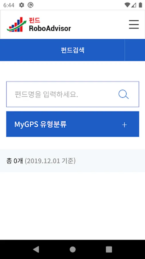 펀드의 선택방법은 검색기능과 MyGPS유형분류에서 선택이 가능하다
