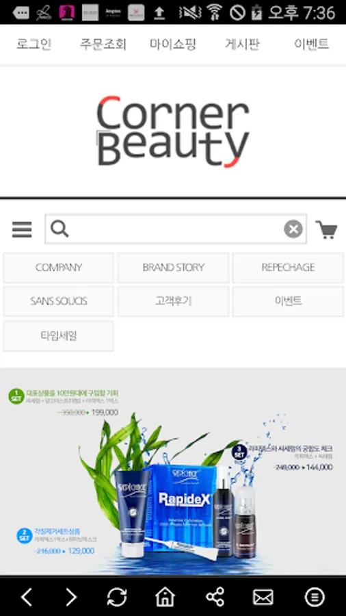 최고의 품질과 기능성을 갖춘 제품들로 구성된 코너뷰티는 합리적인 사고와 소비를 지향하는 현대 여성들의 화장품에 대한 니즈(needs)를 충족시킬 수 있는 전문가용 화장품 쇼핑몰입니다.