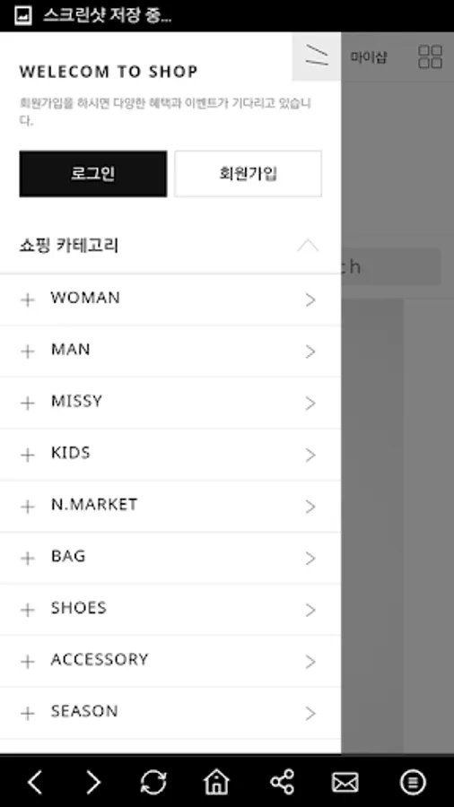 여성의류, 남성의류, 미시의류, 유아동의류, 가방, 신발, 악세사리.