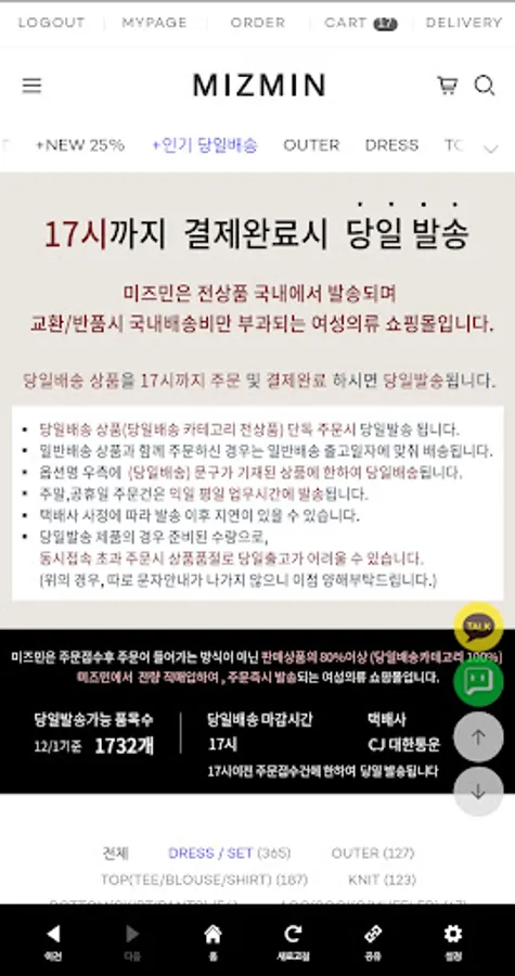 Mizmin is a women's clothing shopping mall that ships all products on the same day.