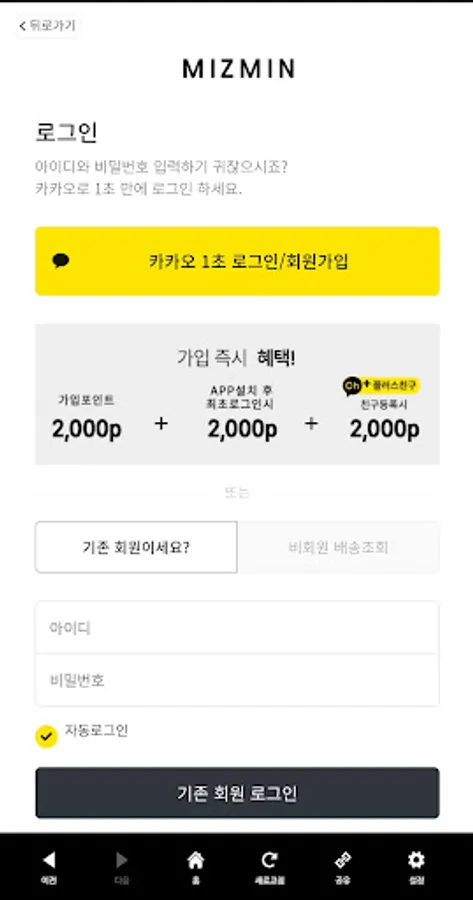 ▶2,000 won discount coupon when logging in for the first time after installing the Mizmin APP