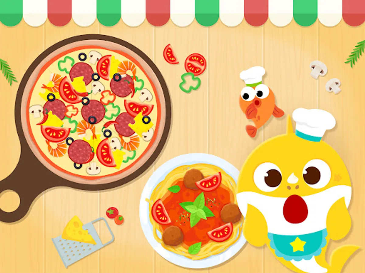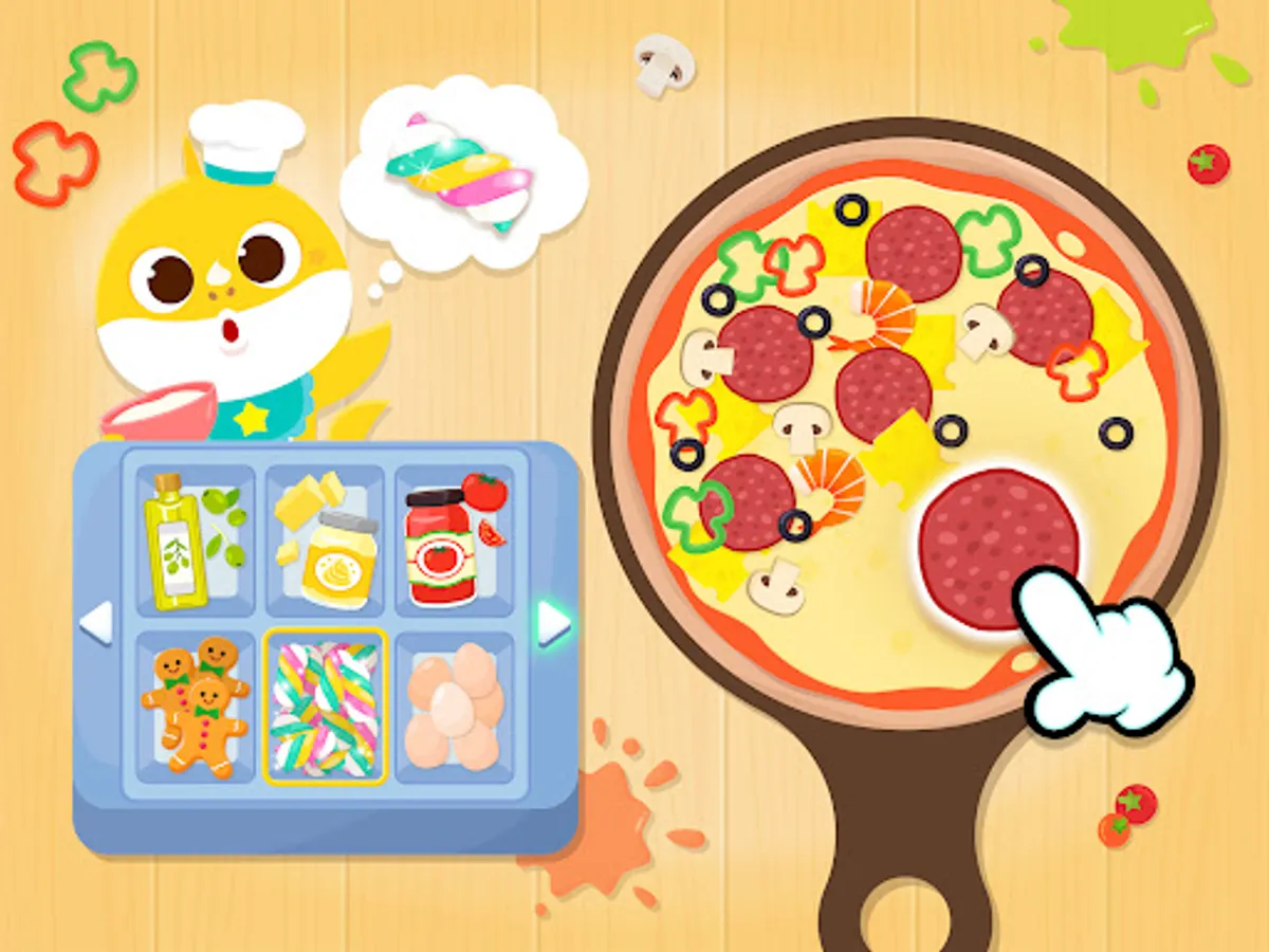 - Baby Shark will help develop creativity skills for toddlers with colorful and unique pizza toppings and pasta ingredients!