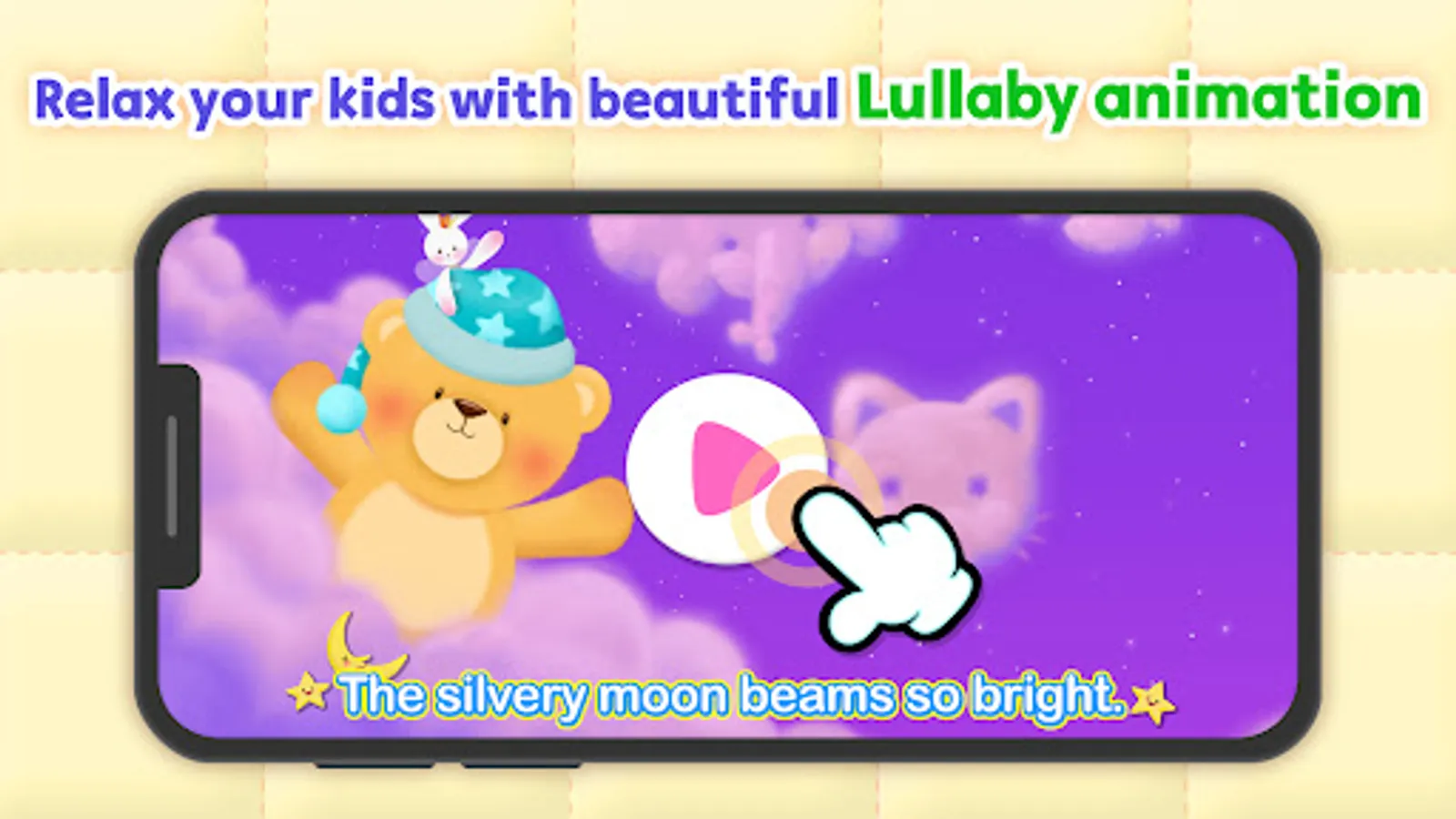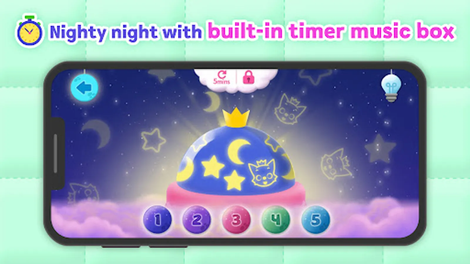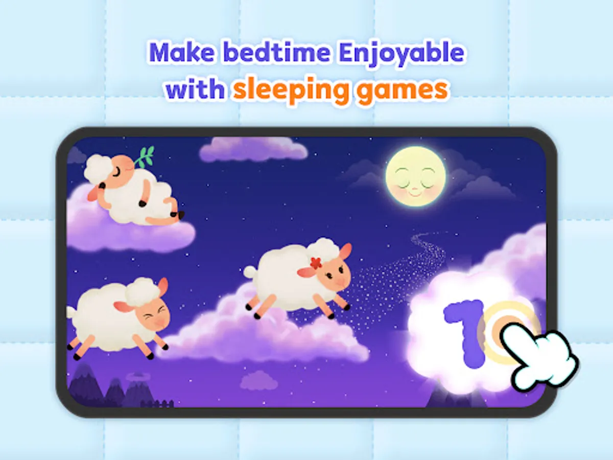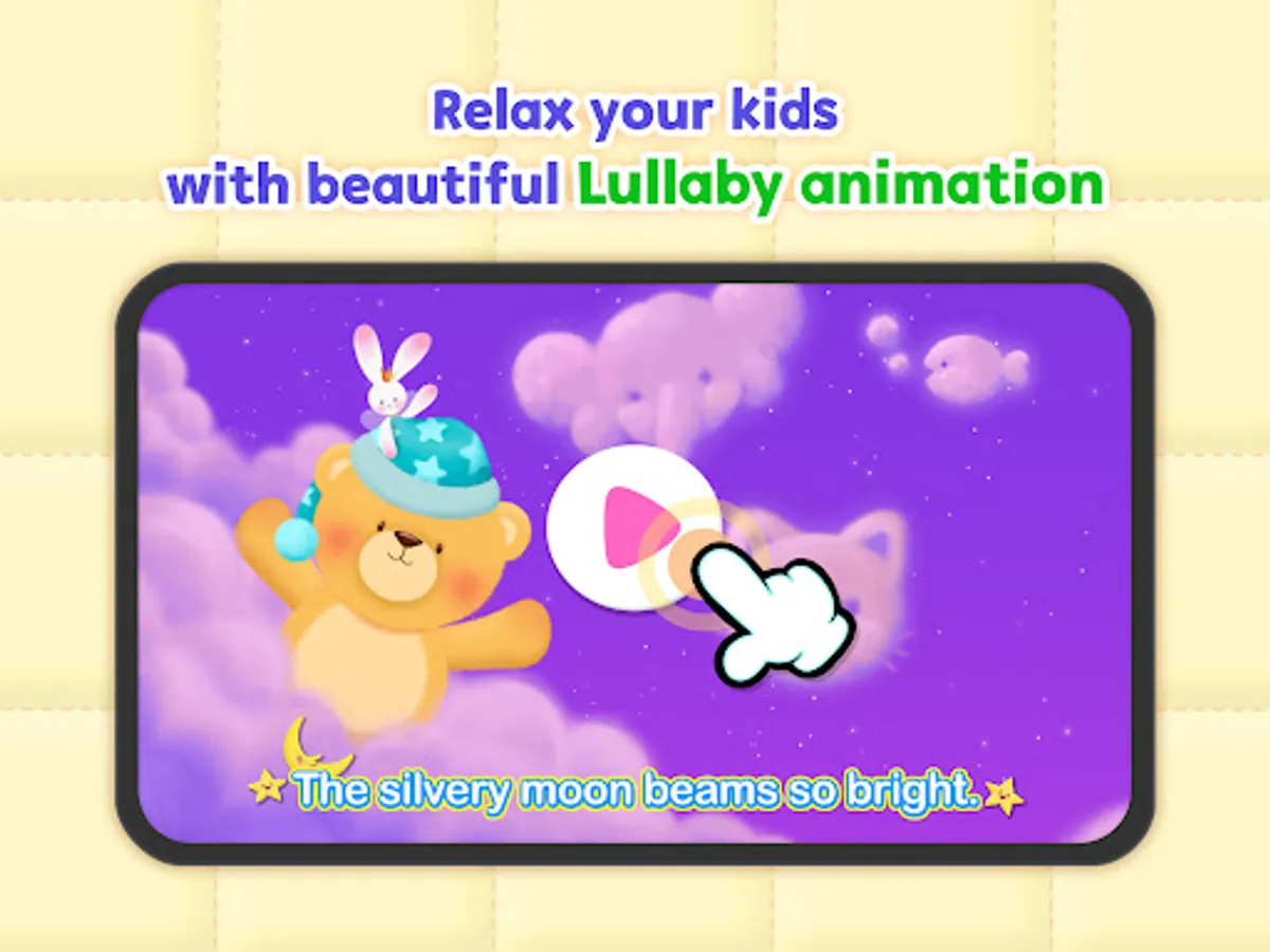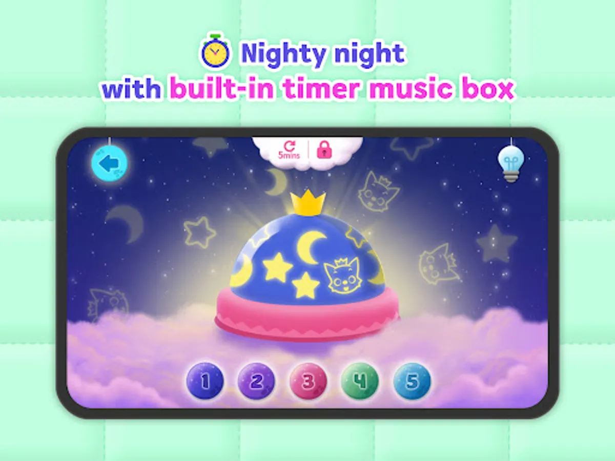 Let your baby fall asleep with classic lullaby songs for babies, soft sleep sounds, night lights, relaxing games, and more!