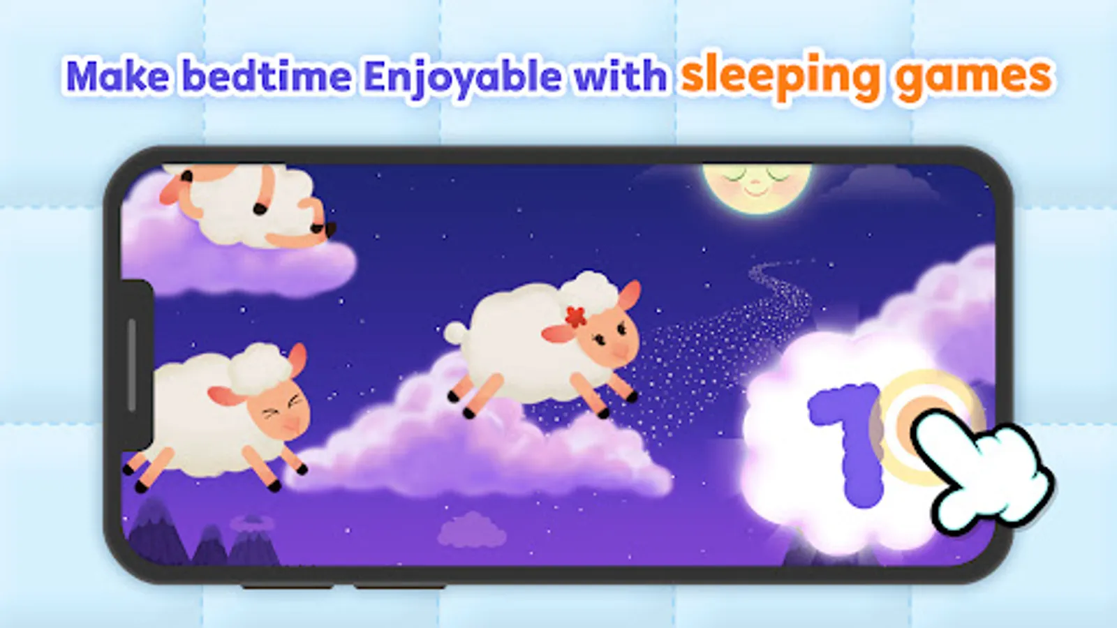 - Play the sheep counting game - count the number of sheeps flying in the night sky.