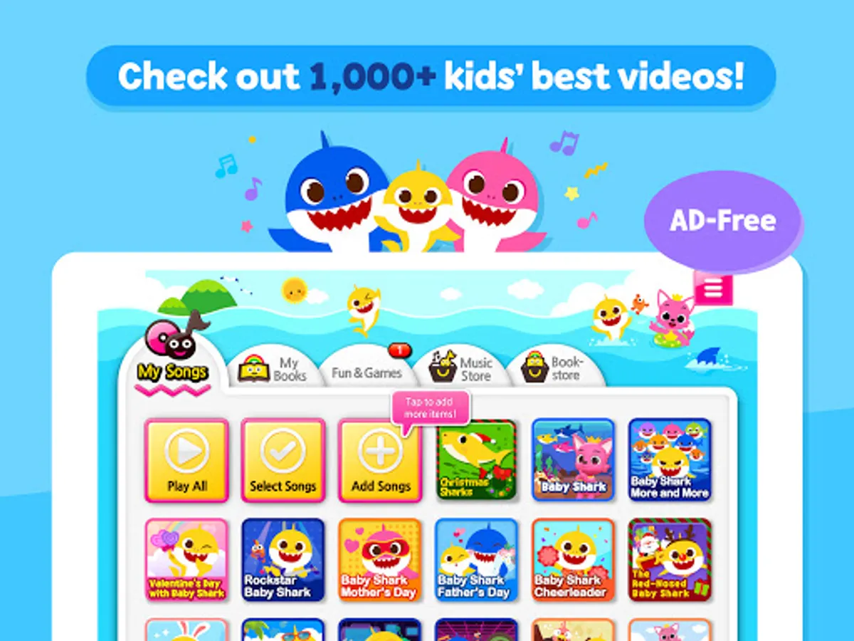 Baby Shark Best Kids Songs & Stories is a safe, educational app for all kids who love singing & dancing.