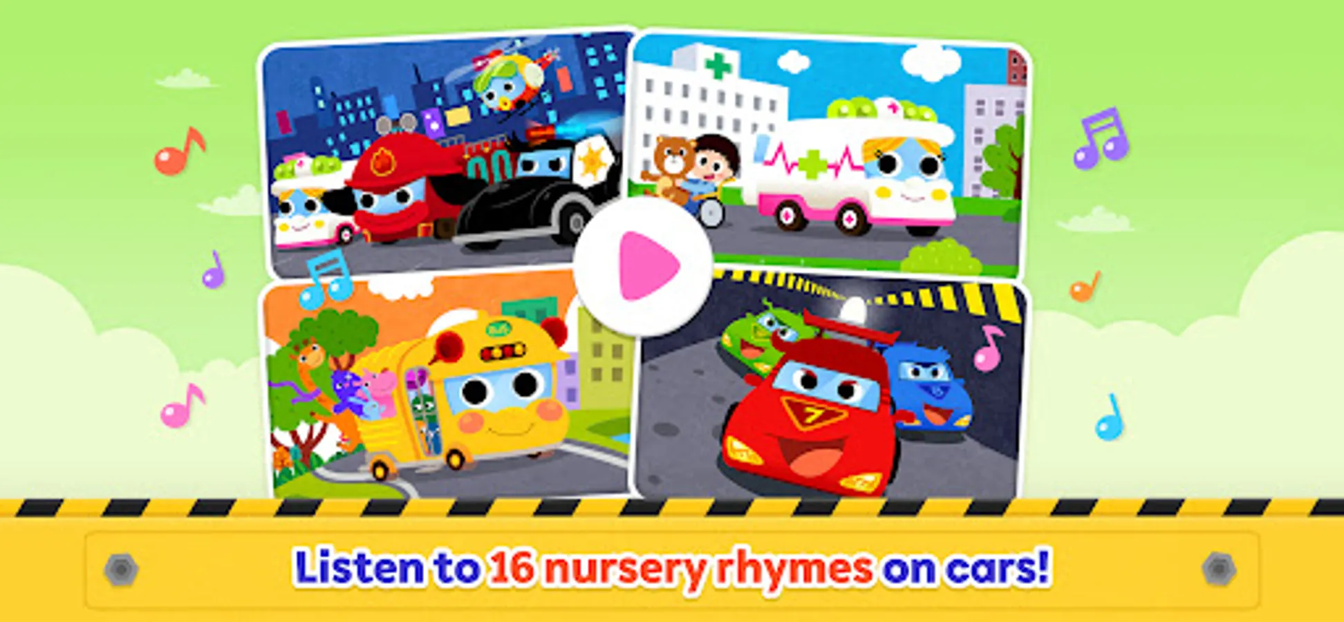 - Sing-along to familiar nursery rhymes and learn the features of different cars naturally.