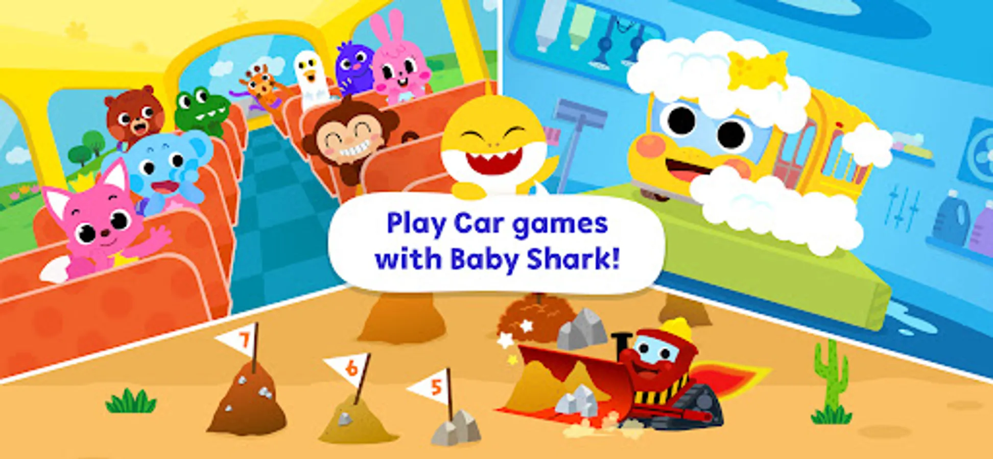 *Baby Shark Car Town is an interactive app packed with fun car games for kids in preschool.