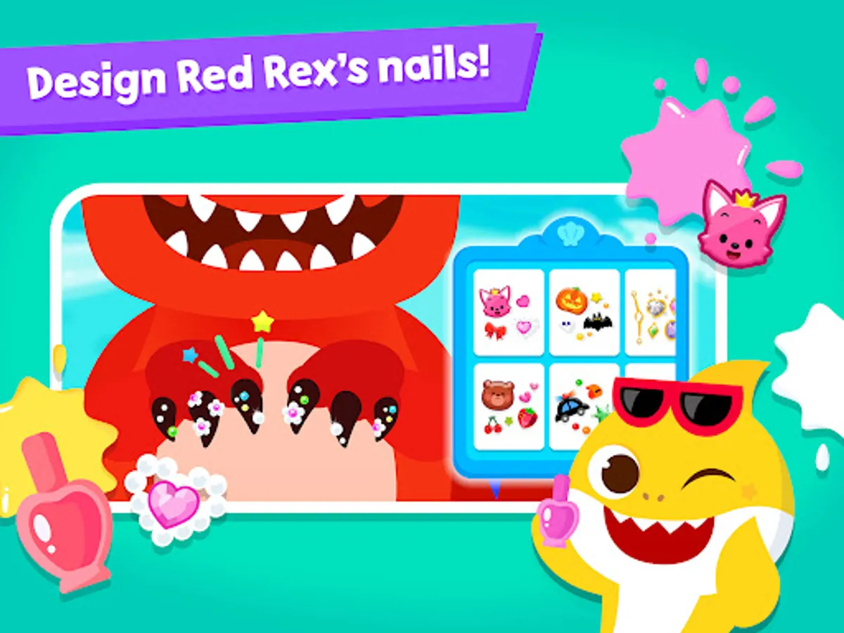Kids can clip nail shapes and choose from manicure colors, glitters, stickers and gems to design beautiful nails with Baby Shark!