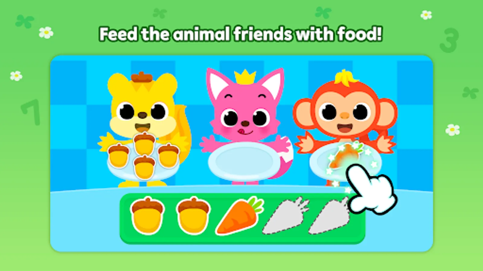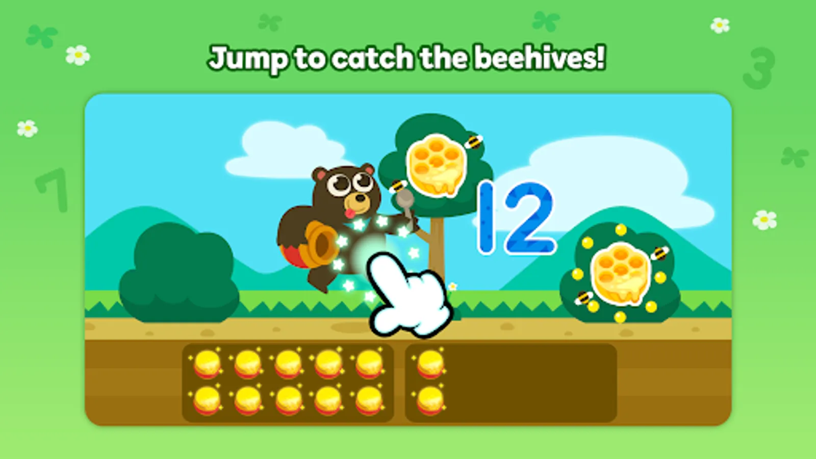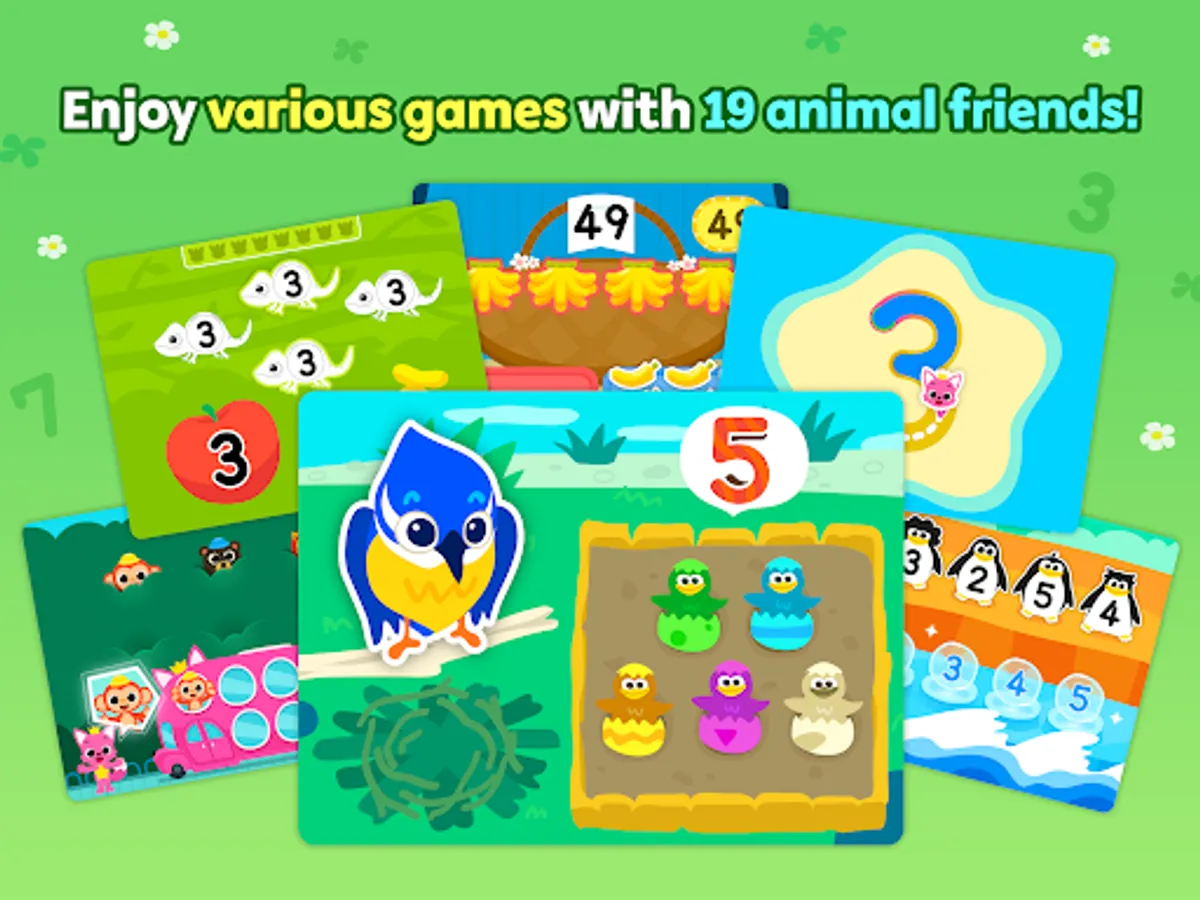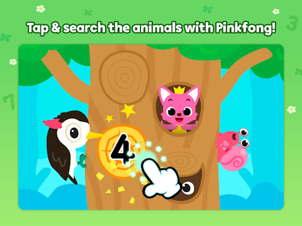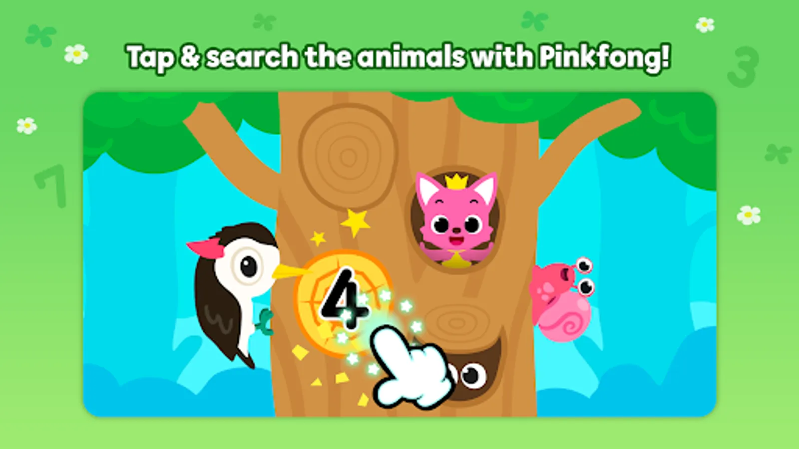 Pinkfong's animal friends will introduce and guide your baby through different kids number games, such as collecting beehives, tracing numbers on the leaves, and counting numbers of the snails.