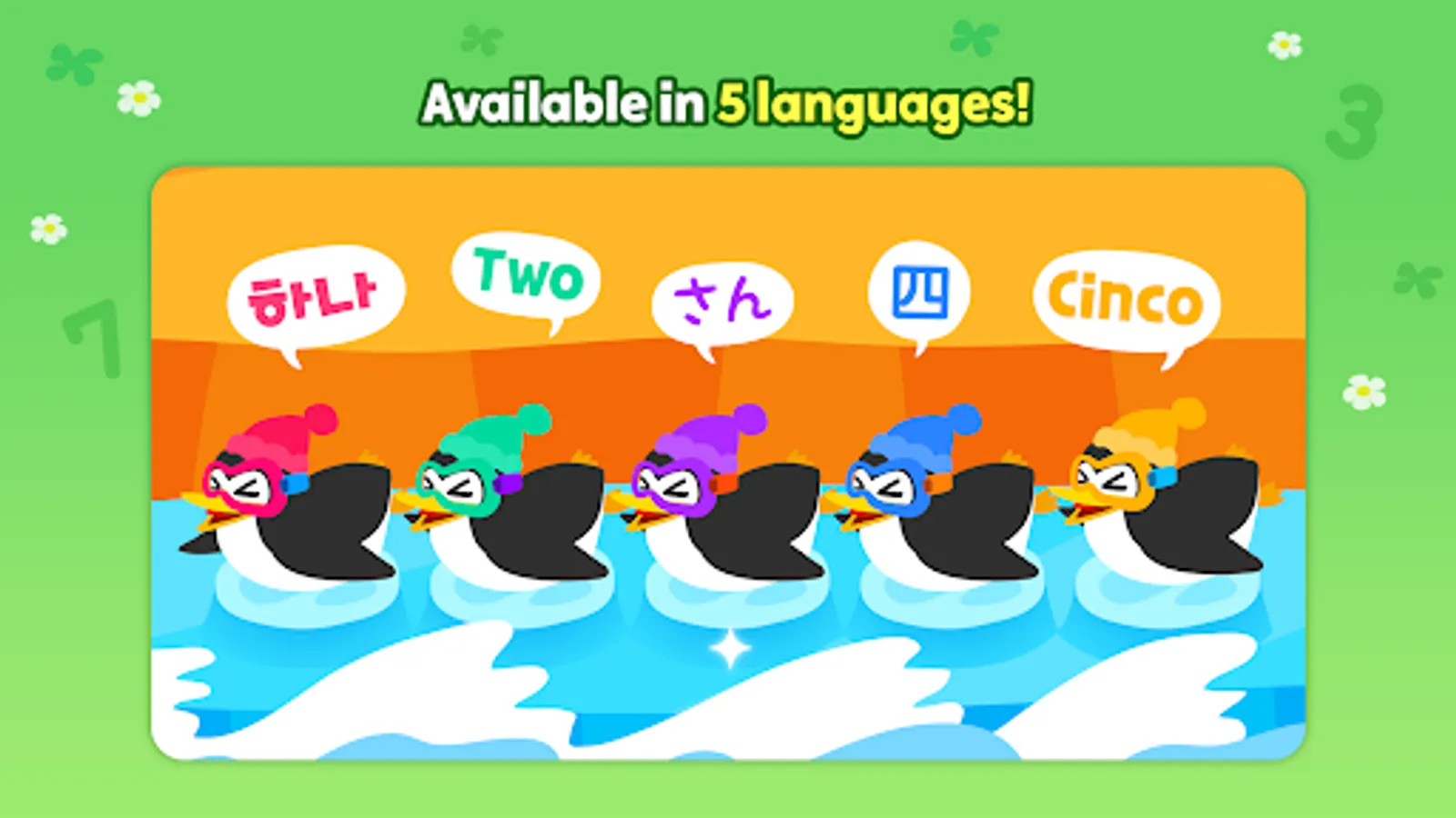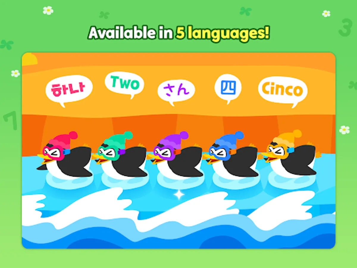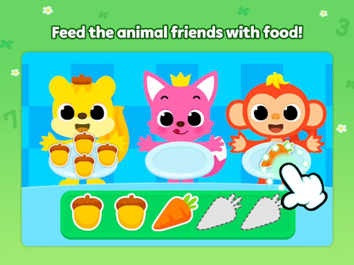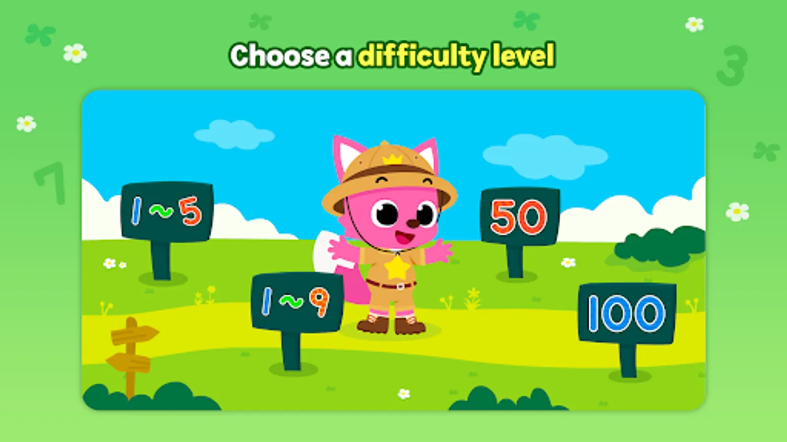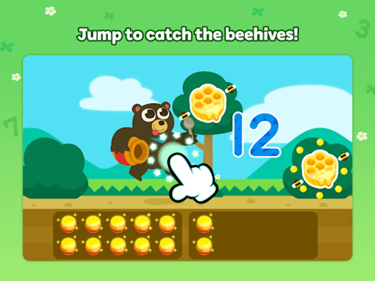 Pinkfong's animal friends will introduce and guide your baby through different kids number games, such as collecting beehives, tracing numbers on the leaves, and counting numbers of the snails.
