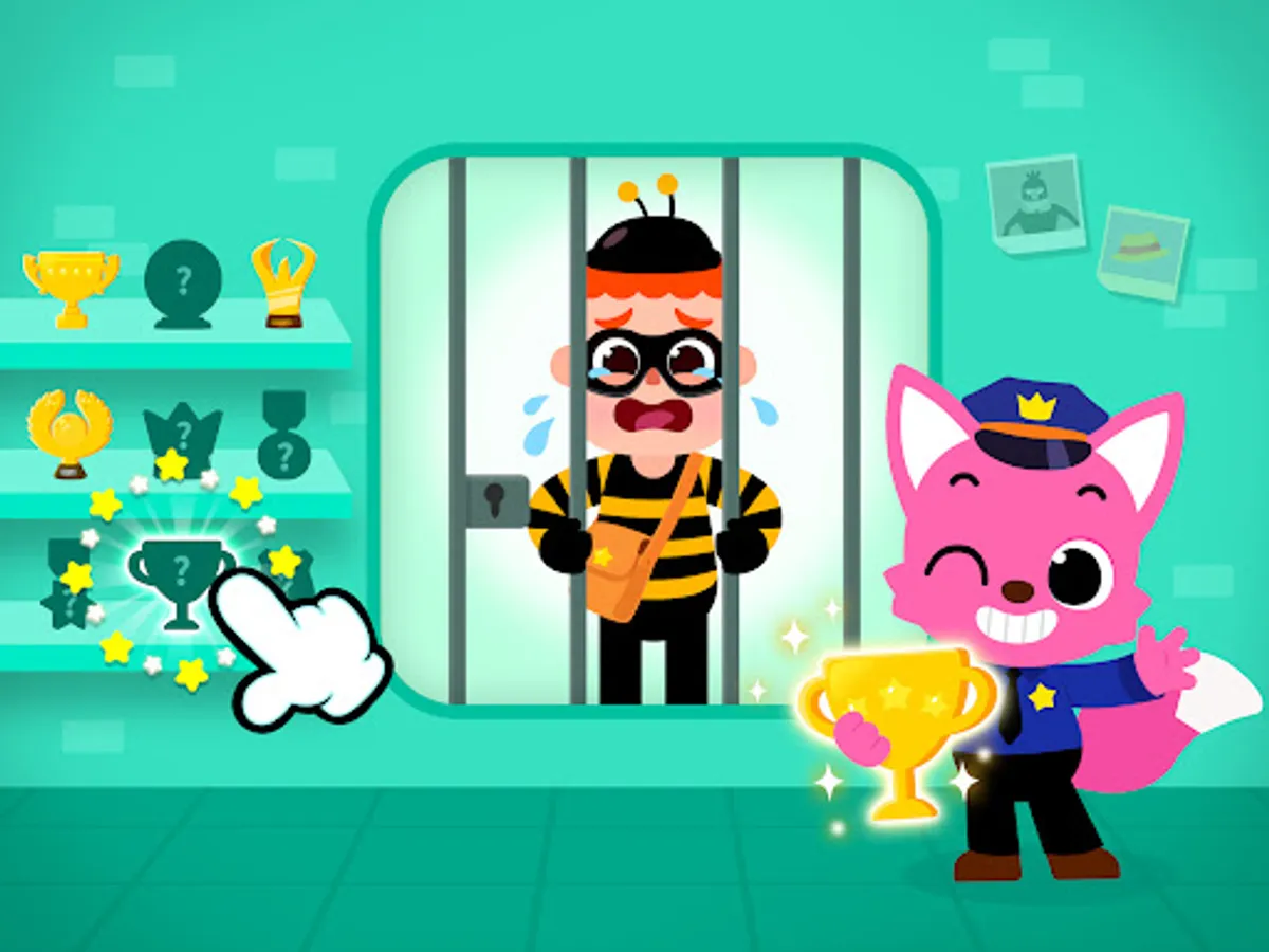 You did it! Best kid police officers get Pinkfong trophies and badges for every catch.
