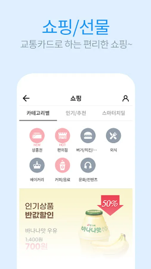 3. Transportation Card Shopping & Gifts: Purchase and present gift certificates (cultural gift certificates/happy money, etc.), Google gift codes, and gifticons (convenience stores/bakeries/coffee/drinks, etc.)