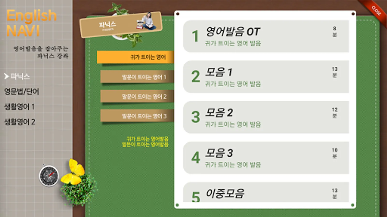 It consists of English conversation video lessons required for beginners. It is possible to study Grammar and Voca from Phonics. In addition, it is composed of Life English which can be used for real life English according to the place and situation in the living place.