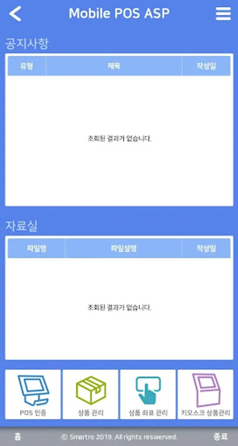 Mobile version of the POS ASP system provided by Smartro. With the app, you can conveniently use the functions used in the existing PC version.