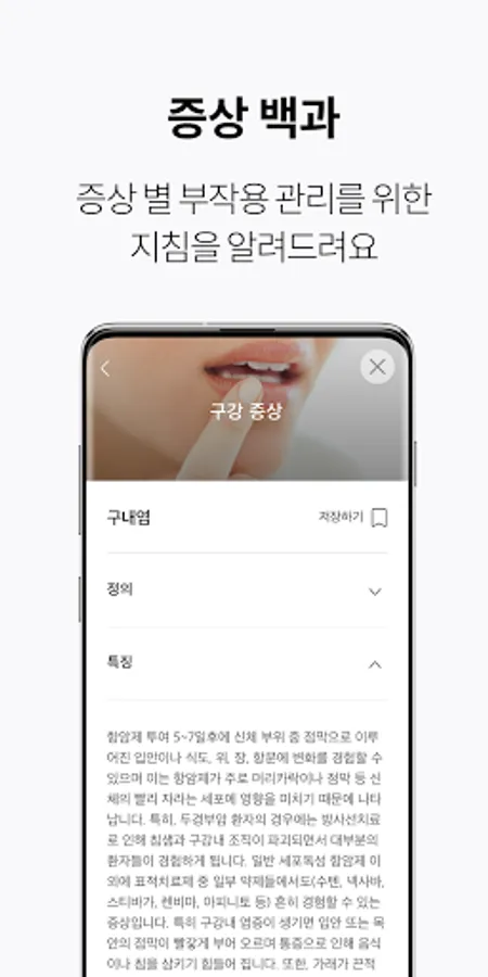 -Symptom input: Current symptoms can be recorded through a survey by side effect.