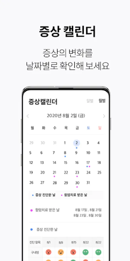 -Symptom summary: You can check the symptom change entered by the patient through an intuitive table.