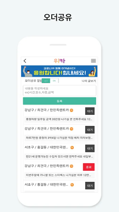 You can receive an alarm at any time when an order is registered through the push notification ON / OFF function at the top of the order sharing bulletin board.