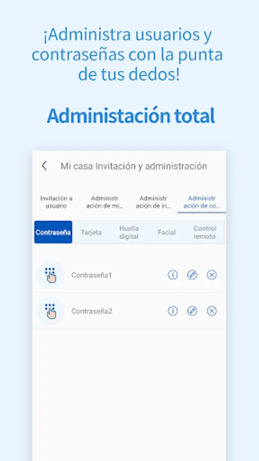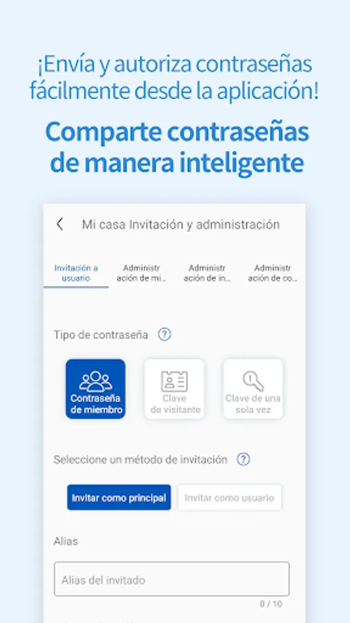 (2) Uso compartido inteligente de claves: crea fácilmente claves de acceso y compártelas por MSM con cualquier persona. (Miembro, Visitante y Clave de un solo uso)