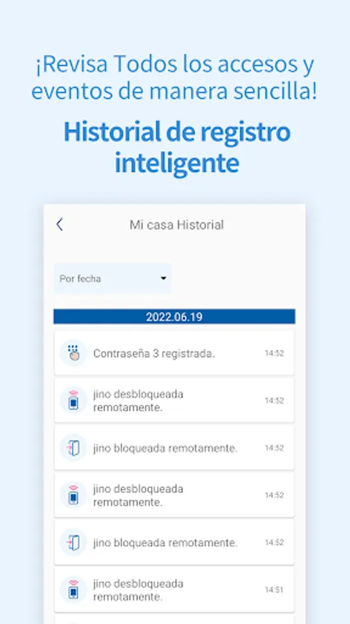 (4) Historial: Todos los eventos y alarmas se pueden ordenar por fecha, usuario y eventos.
