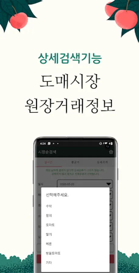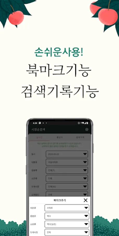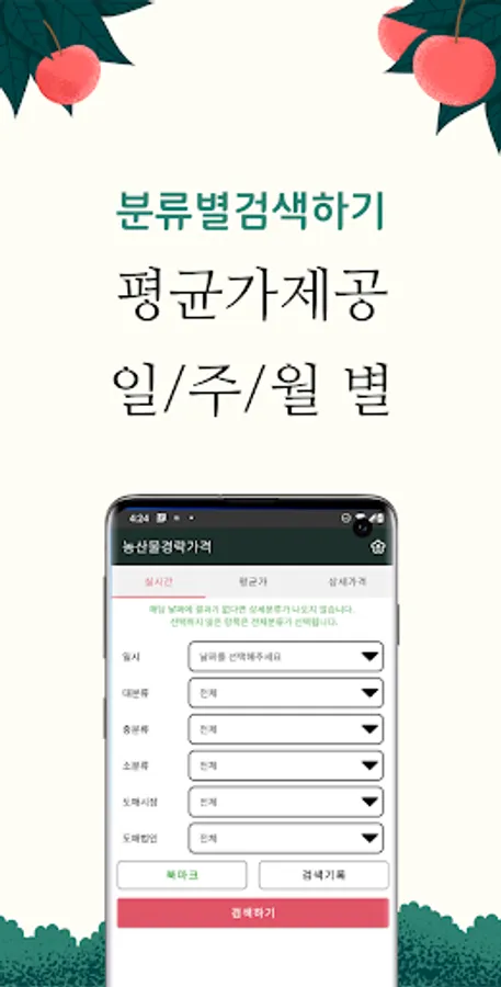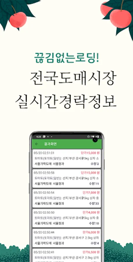The fastest app that provides information on agricultural meridian prices that provide data on wholesale markets for 35 agricultural products nationwide! It provides real-time price information and average price information for the past 5-7 years. Unlike other apps, it provides data at the fastest speed.