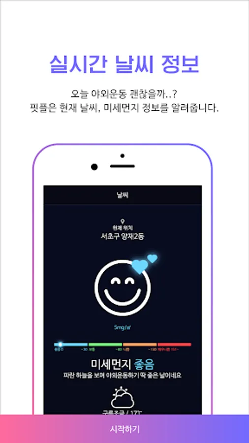 Weather screen based on your current location, you can check the weather and the fine dust concentration into.