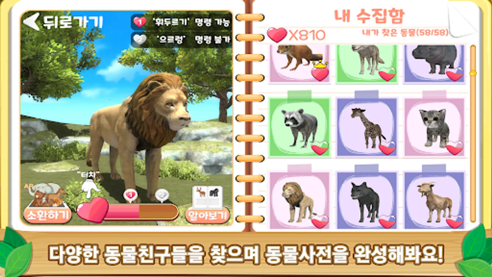 When you become friends with animals, you can take pictures together, learn and solve quizzes, and experience more than just playing together.