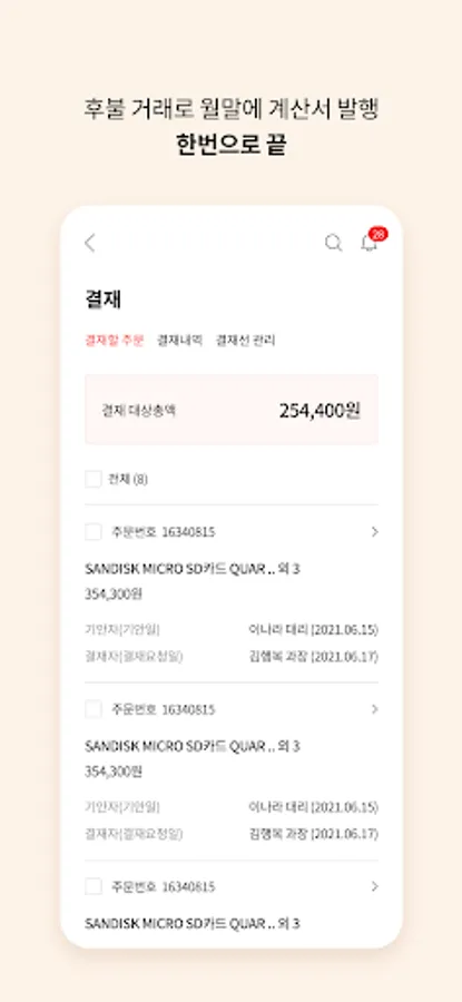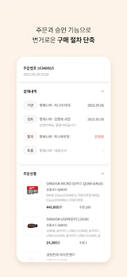 Purchase approval function essential for corporate purchase (order request & request approval)
