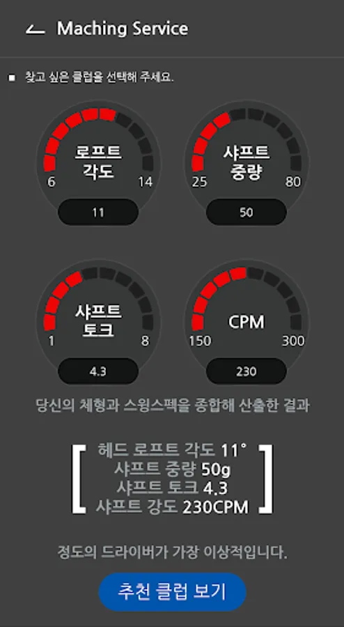 Simply input your own swing spec to get the best club spec