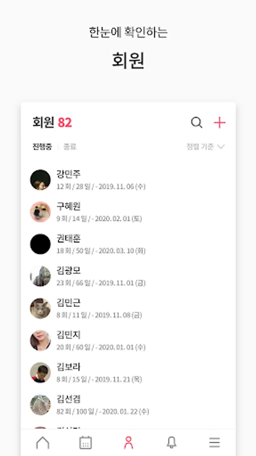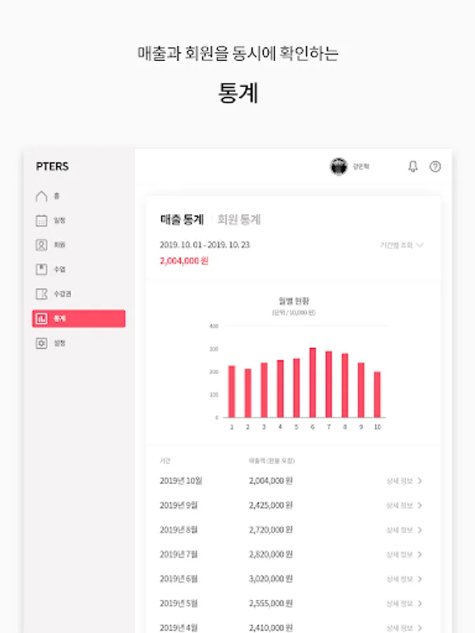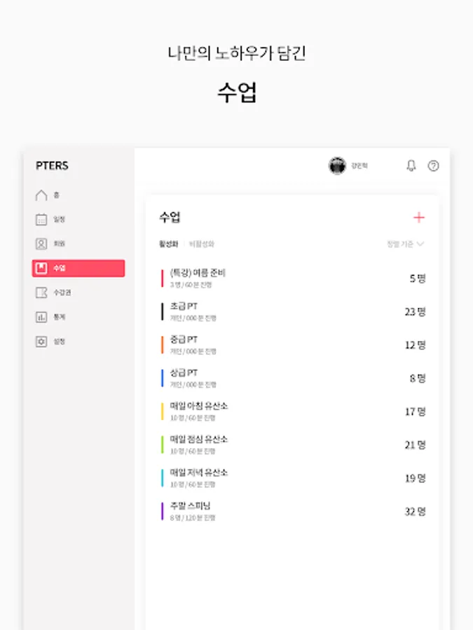 -강사가 회원의 수업이력과 등록이력을 한눈에 살펴볼 수 있습니다.