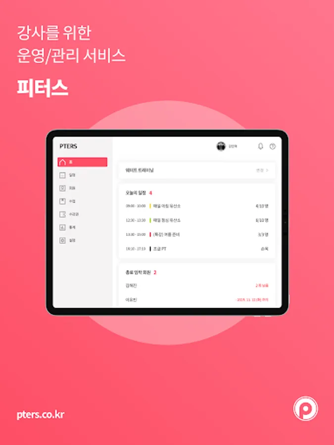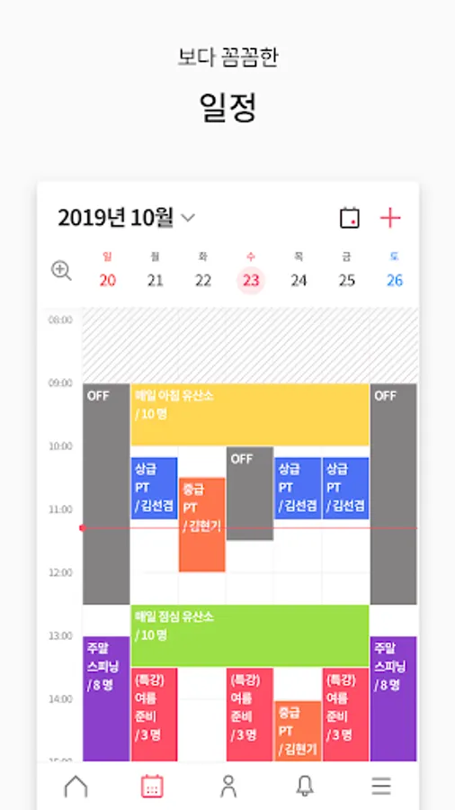 - 웹에서도 사용 가능하며 앱 사용시 회원이 일정을 변경했을 경우 강사에게 즉시 푸시 알람이 통지 됩니다.