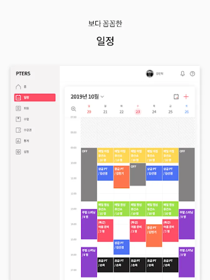 - 피터스는 강사가 일정을 등록하고, 본인의 개인시간, 업무시간등을 [OFF시간] 으로 설정해두면, 강사와 연결된 회원들은 [OFF시간]과 다른회원의 수업시간을 제외한 예약 가능시간을 조회하여 예약하는 것이 가능합니다.