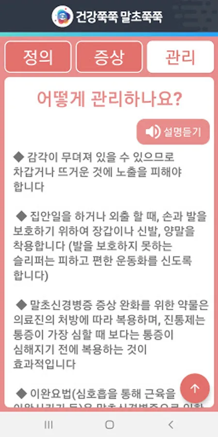 Introducing basic information provision and management methods for target patients suffering from peripheral neuropathy.