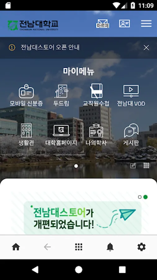 '전남대스토어'는 전남대학교에서 공식적으로 제작하여 배포하는 앱이며, '전남대학교 스마트 가이드', '전남톡', '전남대 용봉톡' 등은 전남대학교와 상관없이 일반 개인(또는 회사)이 만든 앱임을 알려드립니다.
